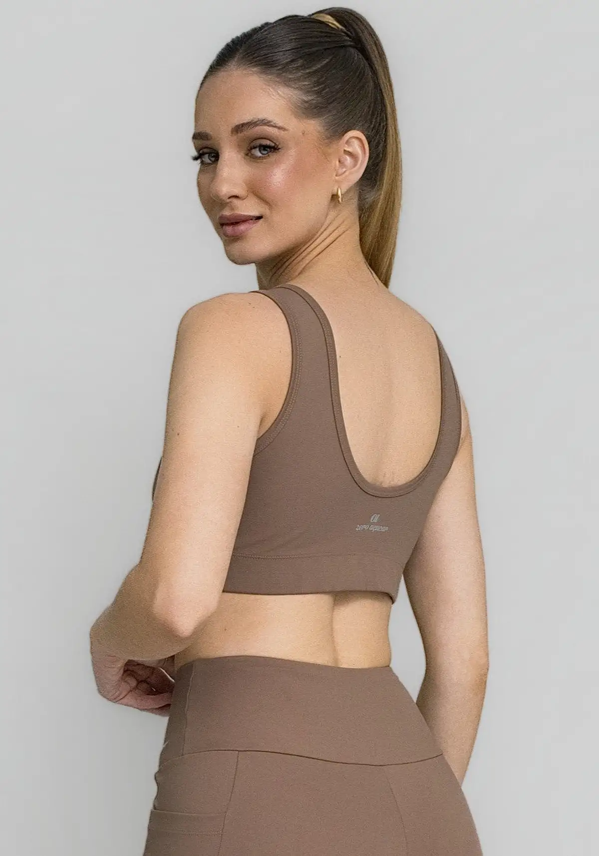 Modelagem clean e anatômica com acabamento delicado, oferecendo visual minimalista e moderno. Sustentação leve com encaixe confortável para rotina ativa e estética esportiva.