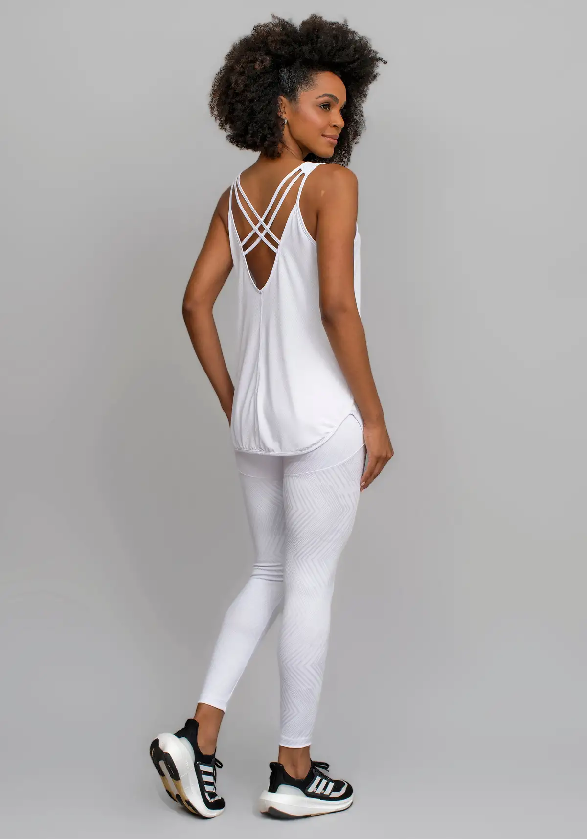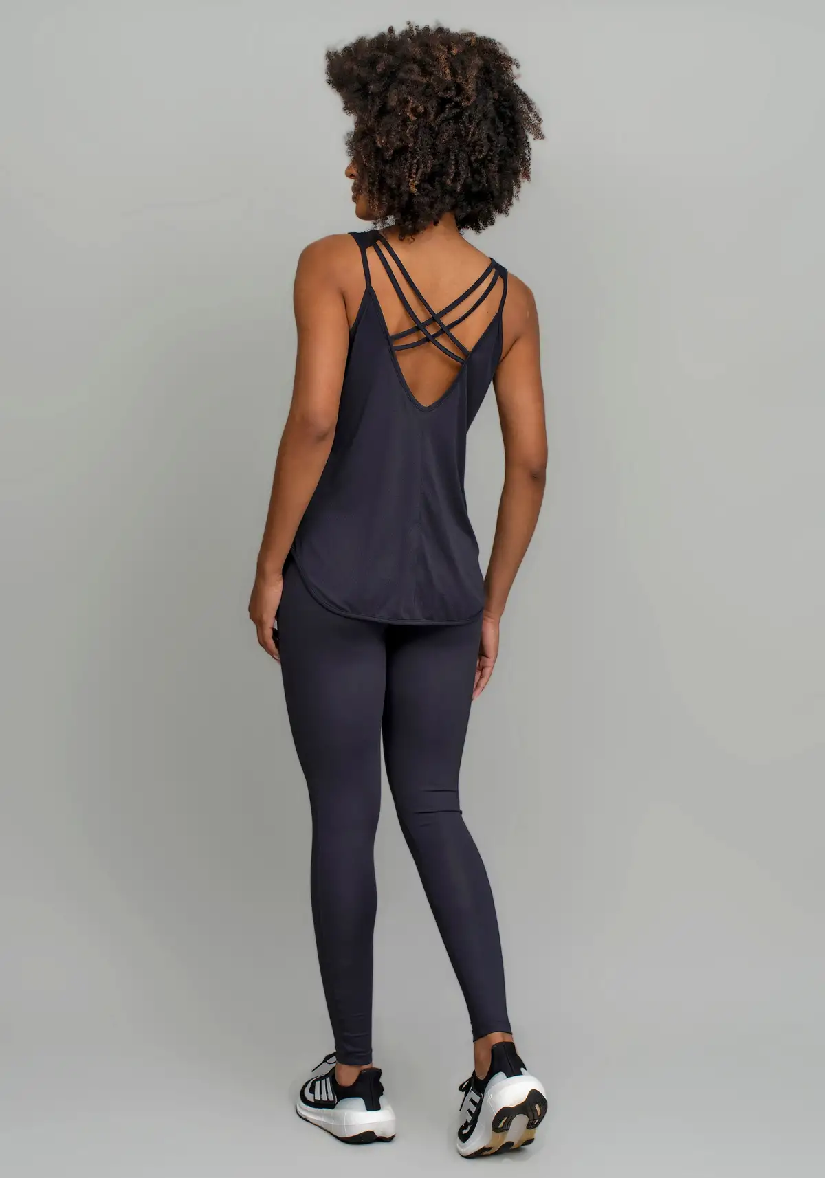 Modelagem com tiras que deixam o visual esportivo moderno e feminino, favorecendo ventilação e liberdade de movimento sem abrir mão do estilo.