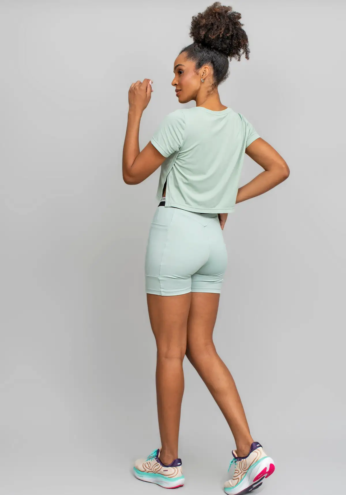 Silhueta esportiva clean que combina com qualquer peça de treino. Visual minimalista que transita bem do treino ao uso casual ativo.