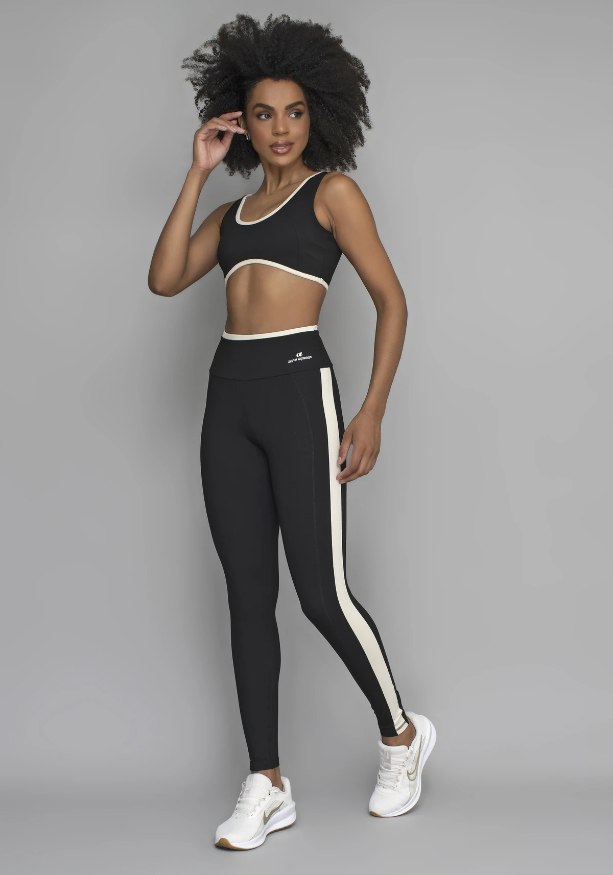 Modelagem moderna com recortes anatômicos que valorizam o corpo e garantem sustentação funcional. Visual clean e sofisticado, ideal para quem busca equilíbrio entre estilo e tecnologia.
