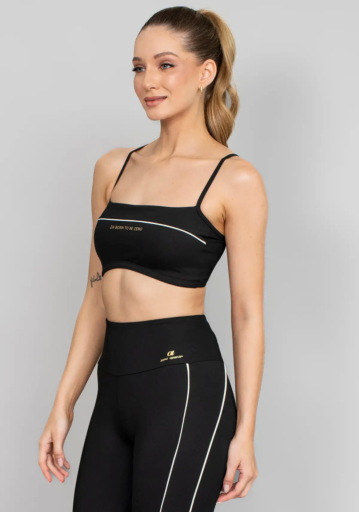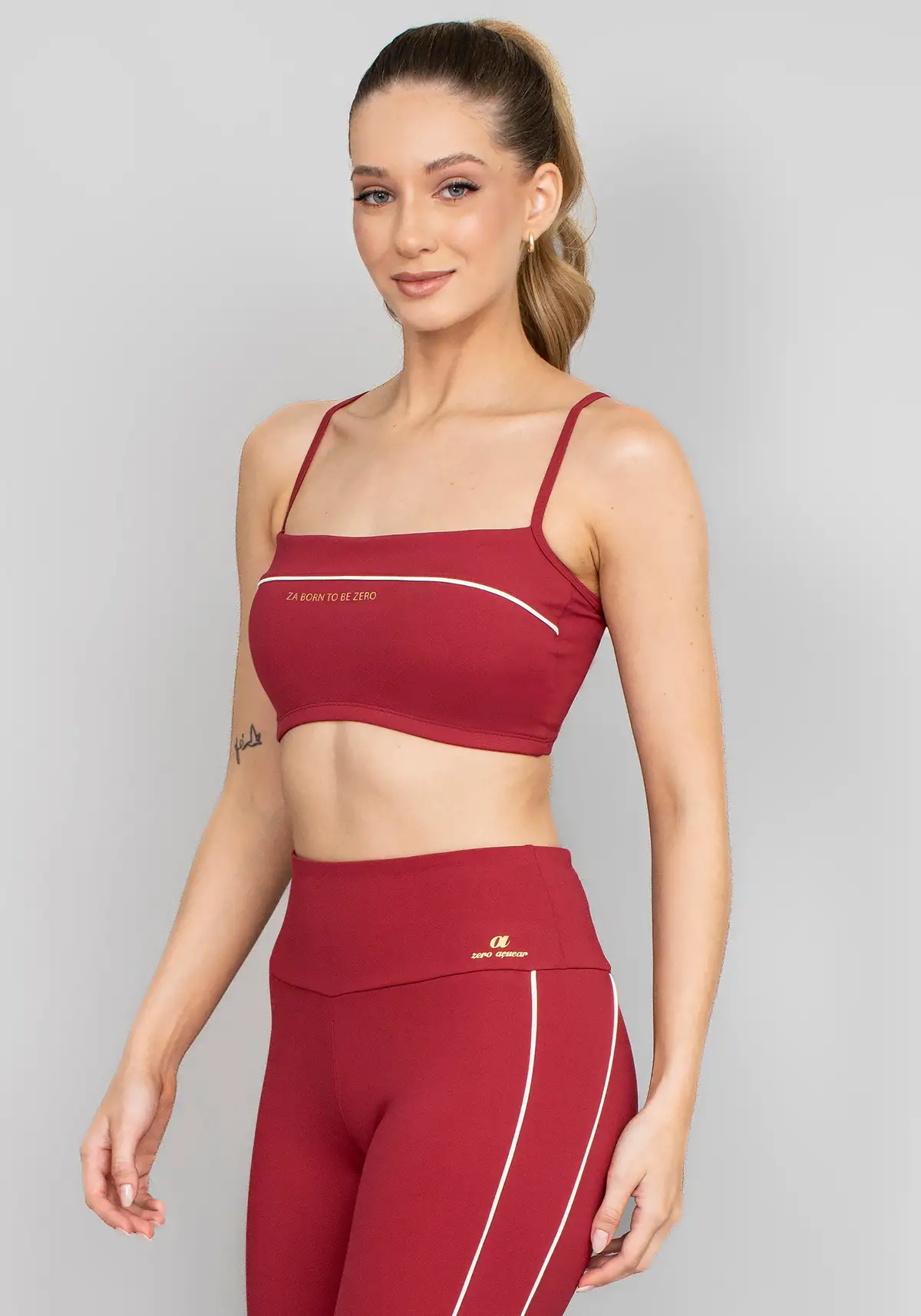 Modelagem tipo faixa com visual clean e feminino, valorizando a região do colo e dos ombros. Estilo versátil para treinos ou uso casual esportivo.