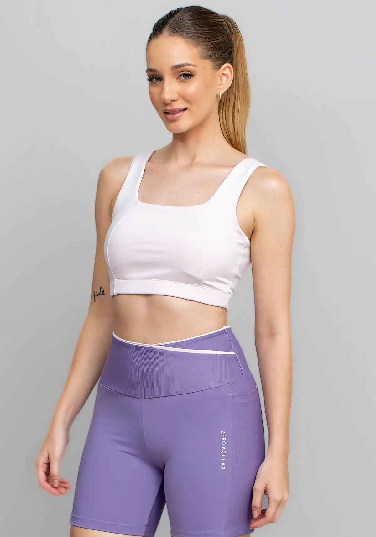 Vai bem com leggings, bermudas e shorts lisos ou com detalhes brilhosos — excelente base para montar looks de treino versáteis.
