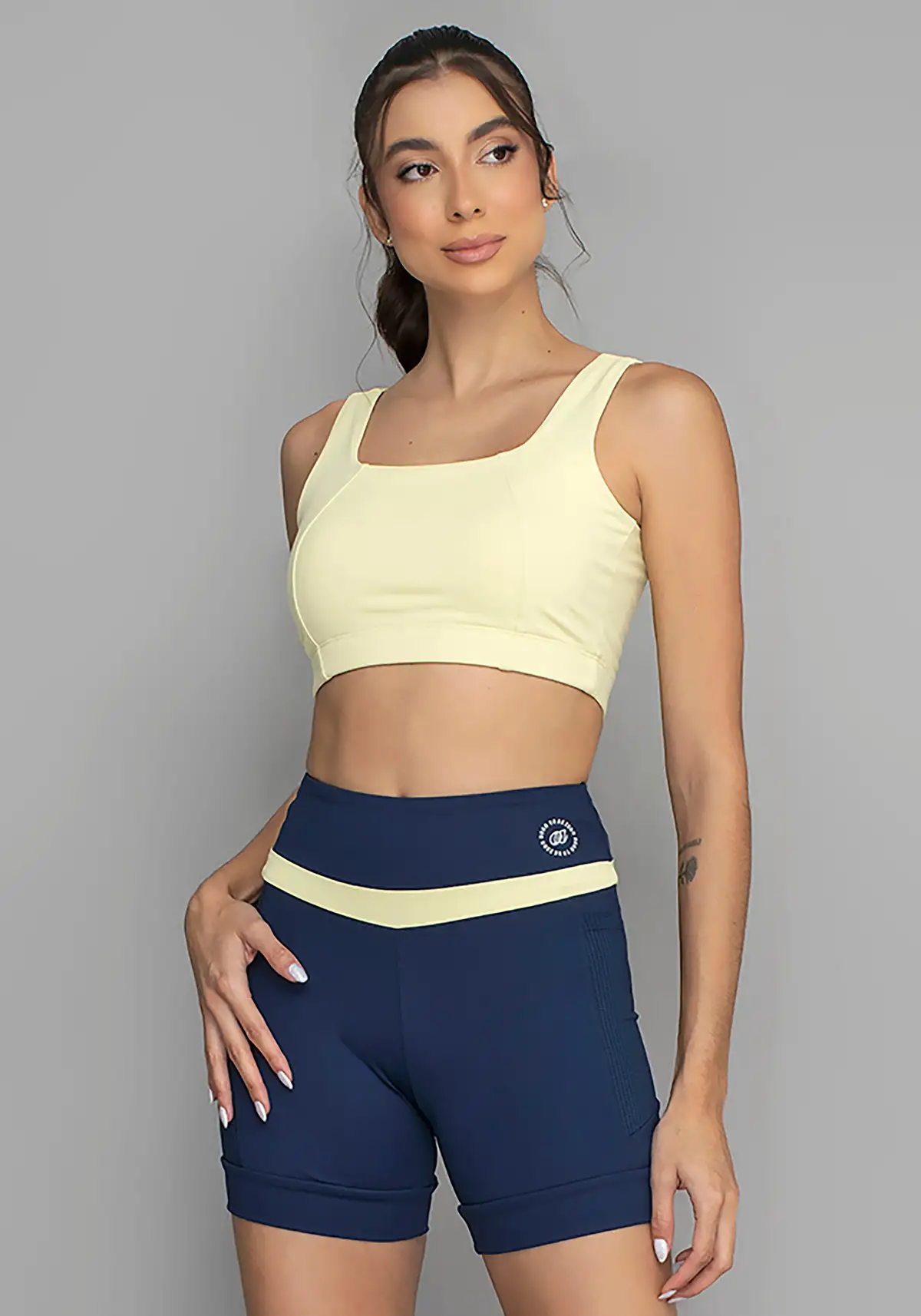 Fica perfeito com leggings ou bermudas lisas ou estampadas. Funciona bem também sob camisetas abertas nas costas ou regatas cavadas.